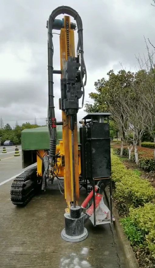 注漿孔鉆機(jī)可獨(dú)立作業(yè)。橡膠履帶保護(hù)了原有路面不被破壞。